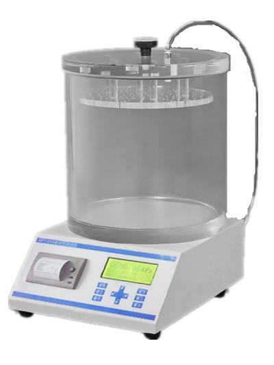 通過對真空室抽真空,使浸在水中的試樣產生內外壓差,觀測試樣內氣體外逸情況,以此判定試樣的密封性能;通過對真空室抽真空,使試樣產生內外壓差,觀測試樣膨脹及釋放真空后試樣形狀恢復情況,以此判定試樣的密封性能。