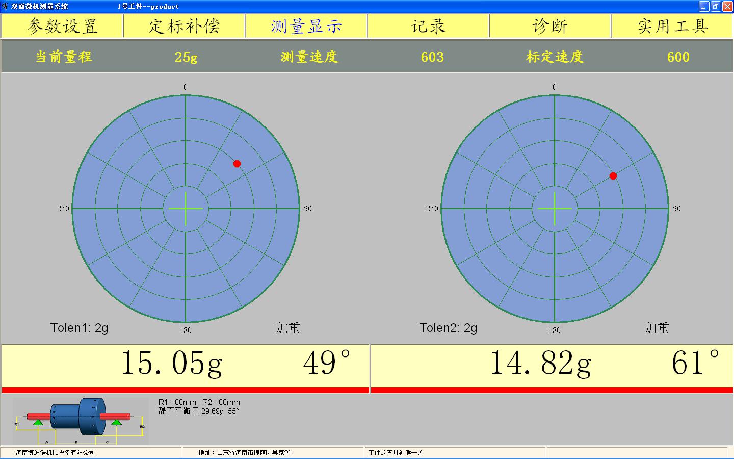 13、測量完畢軟件同時顯示測量的動不平衡量、靜不平衡量和偶不平衡了適應(yīng)于各種工件平衡,例如根據(jù)靜不平衡量和偶不平衡量可進(jìn)行高壓風(fēng)機(jī)的平衡校正。