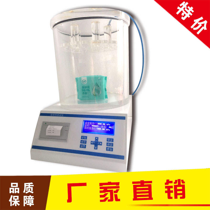 產(chǎn)品用途:適用于食品、制藥、醫(yī)療器械、日化、汽車、電子元器件、文具等行業(yè)的包裝袋、瓶、管、罐、盒等的密封試驗。亦可進行經(jīng)跌落、耐壓試驗后的試件的密封性能測試。