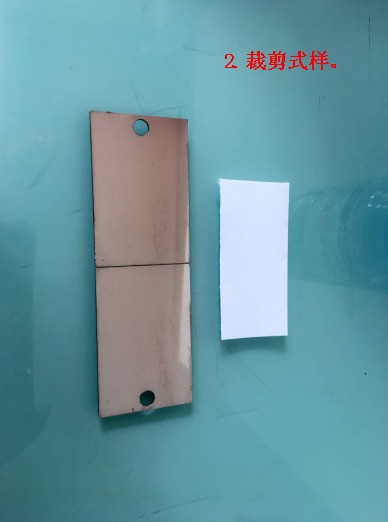 5 在溫度23℃±2℃,相對濕度65%±5%的條件下,按圖2規定的尺寸,將試樣平行于板的縱向粘貼在緊挨著的試驗板和加載板的中部。用壓輥以約300 mm/min的速度在試樣上滾壓。注意滾壓時,只能用產生于壓輥質量的力,施加于試樣上。滾壓的次數可根據具體產品情況加以規定,如無規定,則往復滾壓三次。