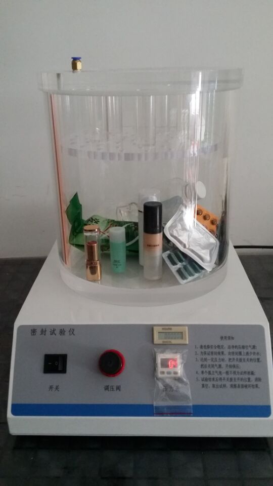 正壓型密封的原理:是一種以利用壓縮空氣源,通過微電腦控制壓力和時間,來檢測和檢驗瓶蓋的密封性能及加工工藝。本儀器為密封包裝的質量和可靠性提供了一種先進、實用、直觀、有效的測試方法,操作簡單、儀器外形設計獨特新穎、便于觀察實驗結果,利用特有的技術,巧妙的把密封部分局部裁取進行測試,不但避免發生爆炸現象,還把市場上現有儀器的精度提高了十倍之多,填補國內的空白。 還可以利用兩個工位一次測兩個試樣,達到了一機多效。因為沒有爆炸缺陷,鋁塑泡罩密封試驗儀試驗人員可以近距離在透明的觀察窗對泄漏情況很好的觀察。