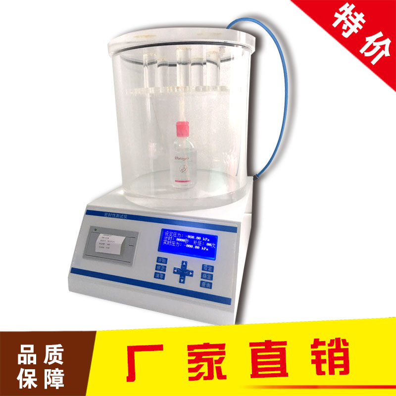 產品用途:適用于食品、制藥、醫療器械、日化、汽車、電子元器件、文具等行業的包裝袋、瓶、管、罐、盒等的密封試驗。亦可進行經跌落、耐壓試驗后的試件的密封性能測試產品特點